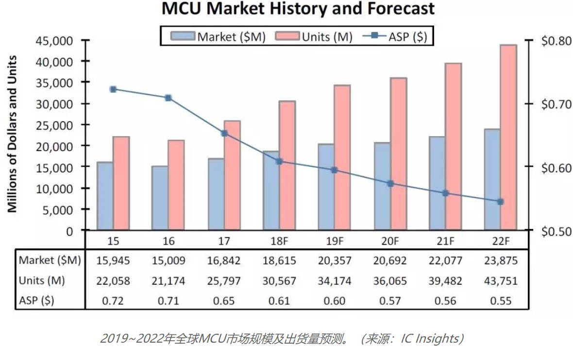 2019~2022年MCU市場規(guī)模出貨量預(yù)測