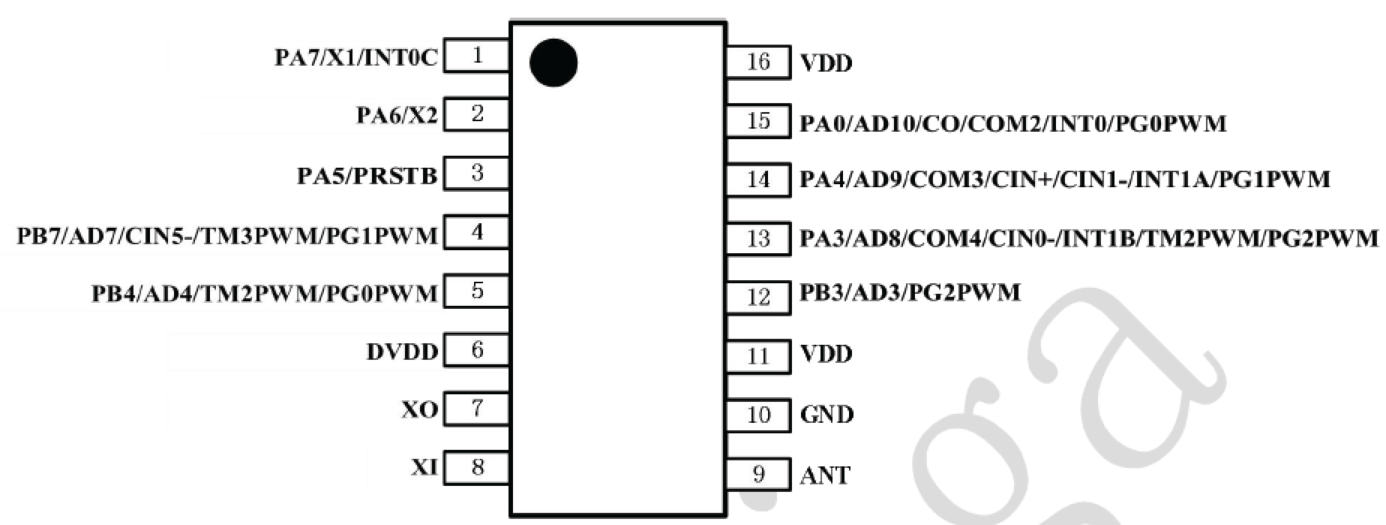 藍牙芯片的BLE射頻發(fā)射功率:最高3dBm。BLE接收靈敏度:-85dBm。包括4KW OTP ROM和256字節(jié)的SRAM。1個16位硬件定時器、兩個8位定時器(可作為PWM生成器)、三個11位硬件PWM生成器、一個硬件比較器、9個IO引腳、6通道12位ADC、ADC參考電壓、一組1T8X8硬件乘法器。時鐘模式內部高頻振蕩器,內部低頻振蕩器,外部晶體振蕩器。喚醒的IO支持兩種喚醒速度:正常和快速,大部分單周期指令,可設定堆棧指針和堆棧深度。MS1586的工作溫度:-20℃~+70℃,工作電壓為2.2V~3.6V,封裝采用SOP16(150mil)。