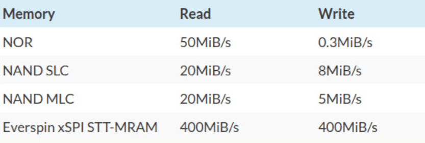 xSPI MRAM的主要亮點是400MB/s的讀寫速度,因為這個速度是NOR或NAND等閃存設備的數倍,在寫入方面甚至更高。該產品的其他好處,比如:在編程之前無需擦除、高效寫入(比NAND 低10倍,比NOR低200倍),以及可以兼容舊軟件的NOR閃存模式。