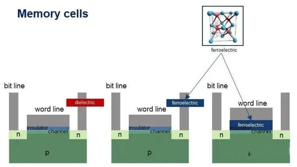 鐵電存儲器稱FRAM或FeRAM,F(xiàn)RAM采用鐵電晶體材料作為存儲介質(zhì),利用鐵電晶體材料電壓與電流關(guān)系具有特征滯后回路的特點來實現(xiàn)信息存儲。