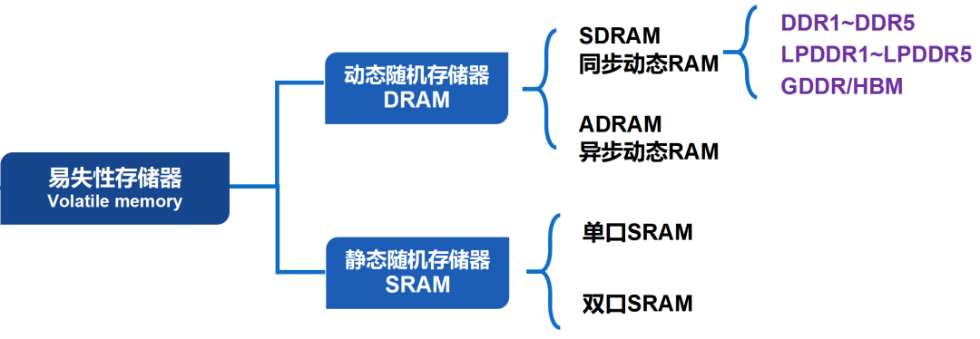 在過去幾十年內(nèi),易失性存儲器沒有特別大的變化,主要分為DRAM(動態(tài)隨機存取存儲器)和SRAM(靜態(tài)隨機存取存儲器)。它在任何時候都可以讀寫,RAM通常是作為操作系統(tǒng)或其他正在運行程序的臨時存儲介質(zhì)(可稱作系統(tǒng)內(nèi)存)。