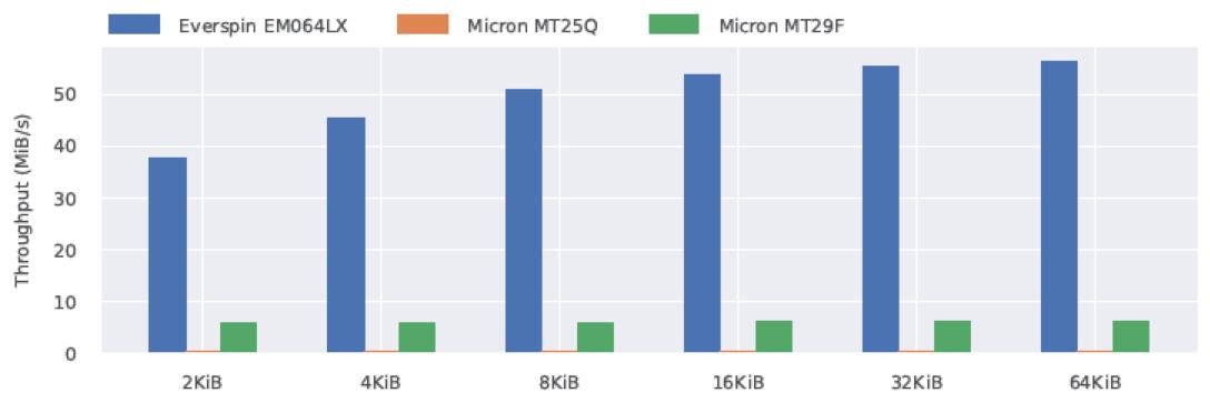 為了進行性能比較,使用了三種不同的存儲芯片,即Everspin